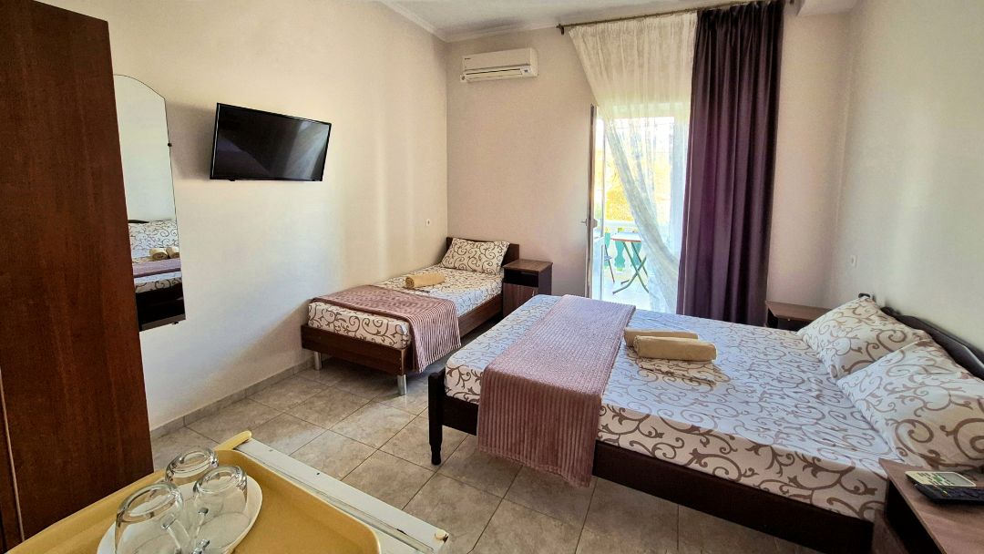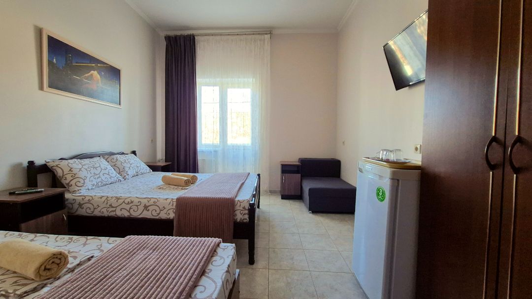 Стандартный 3-местный номер с балконом с двуспальной кроватью и односпальной, или тремя односпальными. Красивый вид из окна на Маркотхский Хребет. При необходимости в номер можно добавить кресло-кровать (сверху удобный матрас-топпер).